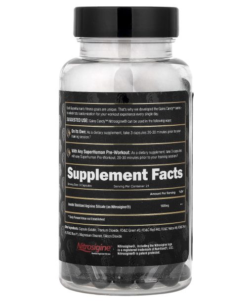 Gains Candy™ Nitrosigine® can be used in the following ways:On Its Own: As a dietary supplement, take 3 capsules 20-30 minutes prior to your training session.With Any SuperHuman Pre-Workout: As a dietary supplement, take 3 capsules with any Superhuman Pre-Workout, 20-30 minutes prior to your training session.