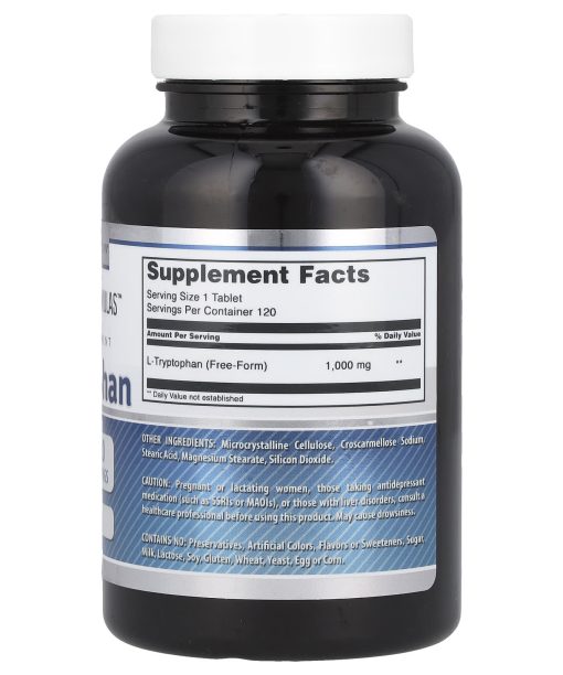 Amazing Formulas™Dietary Supplement 1,000 mg Per ServingVitamin Angels® Proud SupporterAn FDA Regulated FacilityWe believe that Amazing Nutrition® is the key for Healthy Living. We are passionate about bringing you the finest selection of products which can perfectly complement a healthy diet and active lifestyle. L-tryptophan is an essential amino acid needed by our body. Every tablet of Amazing Nutrition L-Tryptophan dietary supplement provides an optimum dosage 1000 mg making it easy to distribute your dosage through the day to reach the correct recommended dosage. Your body requires tryptophan to perform a number of important tasks. The nutrient has been found to:Support healthy sleep.  L-Tryptophan  is needed to produce melatonin, the brain chemical that controls your sleep cycle.Balance your mood. L-Tryptophan is a precursor to serotonin, the feel good chemical that eases stress and regulates mood.Aids in immune system function. The amino acid is needed to produce kynurenines, which help defend the body from germs. Promotes healthy circulation & nervous system function. Your body converts L-Tryptophan to niacin to support blood flow and nervous system function.Supports healthy digestion.  L-Tryptophan  helps your body metabolize nutrients and manufacture hydrochloric acid to break down your food.