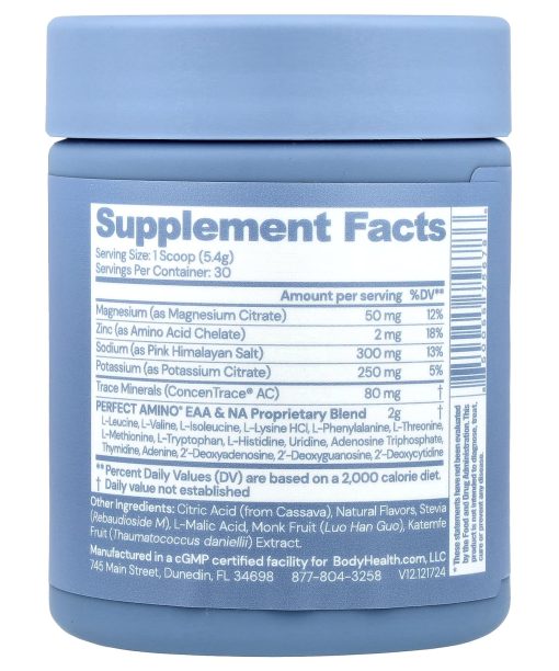Optimized for Maximum HydrationVegan Dietary SupplementGluten & Dairy FreePaleo & Keto-FriendlyElectrolyte Powder Blend with Essential Amino Acids and Nucleic Acid Building Blocks. Rehydrate. Replenish. Refresh. Minerals, electrolytes & amino acids are essential components that enable biological reactions within our cells. PERFECT AMINO® Electrolytes is precisely formulated with a blend of key minerals and electrolytes, including magnesium, zinc, sodium & potassium, + 68 additional ionic trace minerals & amino acids. This is to restore what is lost through activity & promote optimal hydration & rapid recovery. While other electrolytes have added sugars, PERFECT AMINO® Electrolytes represents an optimal hydration solution to replace these vital components & support maximum hydration, without the sugar.