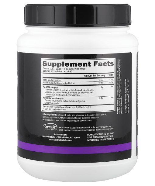 Combine 1 serving of PURPLE WRAATH™ with 10-20 fl oz. of water, and consume it during the workout. Shake well before drinking. PURPLE WRAATH™ should be used in conjunction with other Controlled Labs products, with an adequate amount of water per day, and a high protein/moderate carbohydrate diet. You may consume up to a maximum of 2 servings per day.