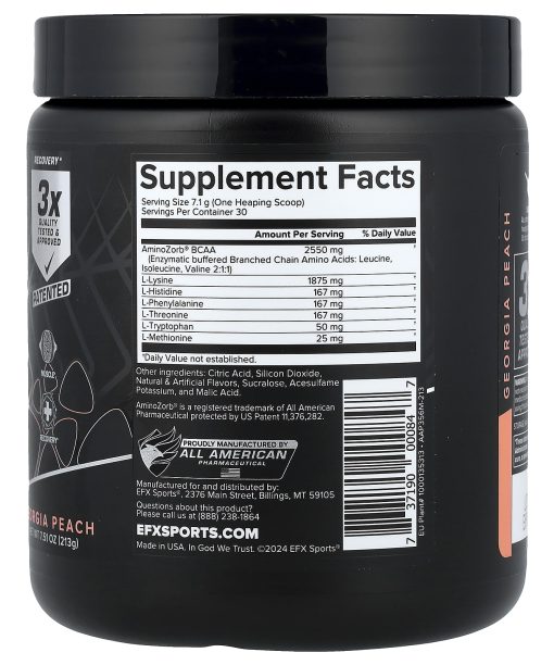 pH-Correct® BCAA + Essential AminosDietary SupplementAminoZorb® Amino Stability TechnologyRecovery3x Quality Tested & Approved PatentedMuscle5 g EAAs2:1:1 AminoZorb® BCAAsStable in SolutionZero SugarsOur 3x TestingWe don’t cut corners! In order to know if a product meets label claim, it must be tested AND verified. Few supplement companies have the capability to test in-house, but at EFX Sports® we have an on-site lab that verifies ALL of our products are SPOT ON!