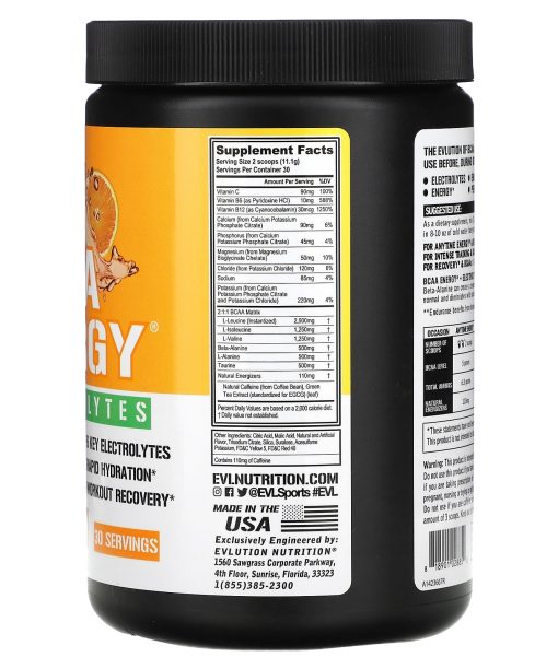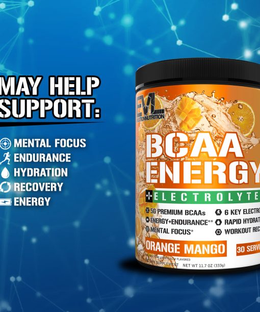 BCAAs + Energy + Electrolytes + Hydration5 g Premium BCAAsEnergy + Endurance6 Key ElectrolytesRapid HydrationWorkout RecoveryNaturally and Artificially FlavoredDietary SupplementThe Evlution of BCAAs Engineered And Energized for Use Before, During or After Training to Support:ElectrolytesEnergyEndurance**PerformanceMental FocusBuilding MuscleBCAA Energy® + Electrolytes contains caffeine and Beta-Alanine. Beta-Alanine can create a temporary tingling feeling on your skin. This is normal and diminishes with continued use.**Endurance benefits from branched chain amino acids.