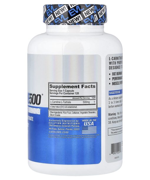 EVLution Nutrition, L-Carnitine500®, 500 mg, 120 Capsules