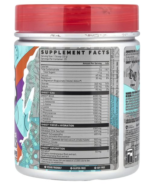 EAA, BCAA HydrationDietary SupplementNaturally and Artificially FlavoredVegan FriendlyGluten FreeSoy FreeKSM-66 Ashwagandha®Aquamin™Cognizin®AstraGin®Albion® MineralsGhost® Intra was conceived to sustain greatness at any hourFitnessSportParty AnytimeClassic True to Juice TasteOur intra-workout POWERHOUSE. Packed with an EPIC 10 G total EAAs per serving, plus Astragin® for absorption… oh yeah, and we threw in fully efficacious doses of Taurine, Cognizin® and KSM66® for an added focus and hydration play. Enjoy GHOST® INTRA with us around the clock. We sip ours at the gym, at the office and even with the squad before a night out.Our Scoop’s Always on TopThe patented GHOST® nested scoop ensures you never go digging fort your scoop again.