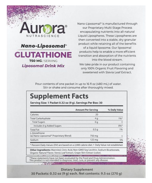 Aurora Nutrascience, Nano-Liposomal®, Glutathione, Liposomal Drink Mix, 30 Packets, 0.32 oz (9 g) Each