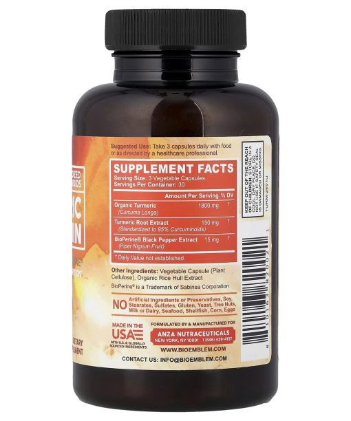 Non GMO95% Standardized Curcuminoids1950 mgWith Bioperine® For Enhanced AbsorptionDietary SupplementLab TestedcGMP Certified FacilityGluten FreeVeganHelps SupportJoint HealthHeart HealthCognitive FunctionAntioxidant ActivityImmune SystemInflammation ResponseThe BioEmblem MantraNature’s best ingredients in mindfully crafted formulas for a more radiant life.