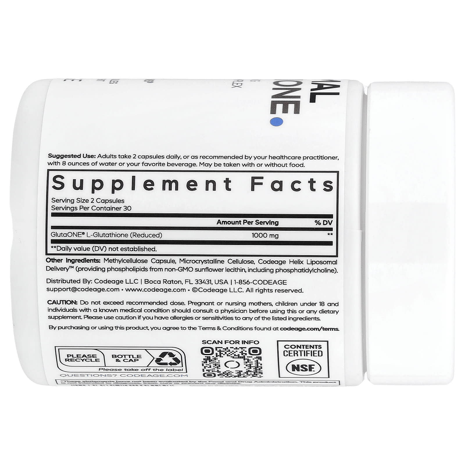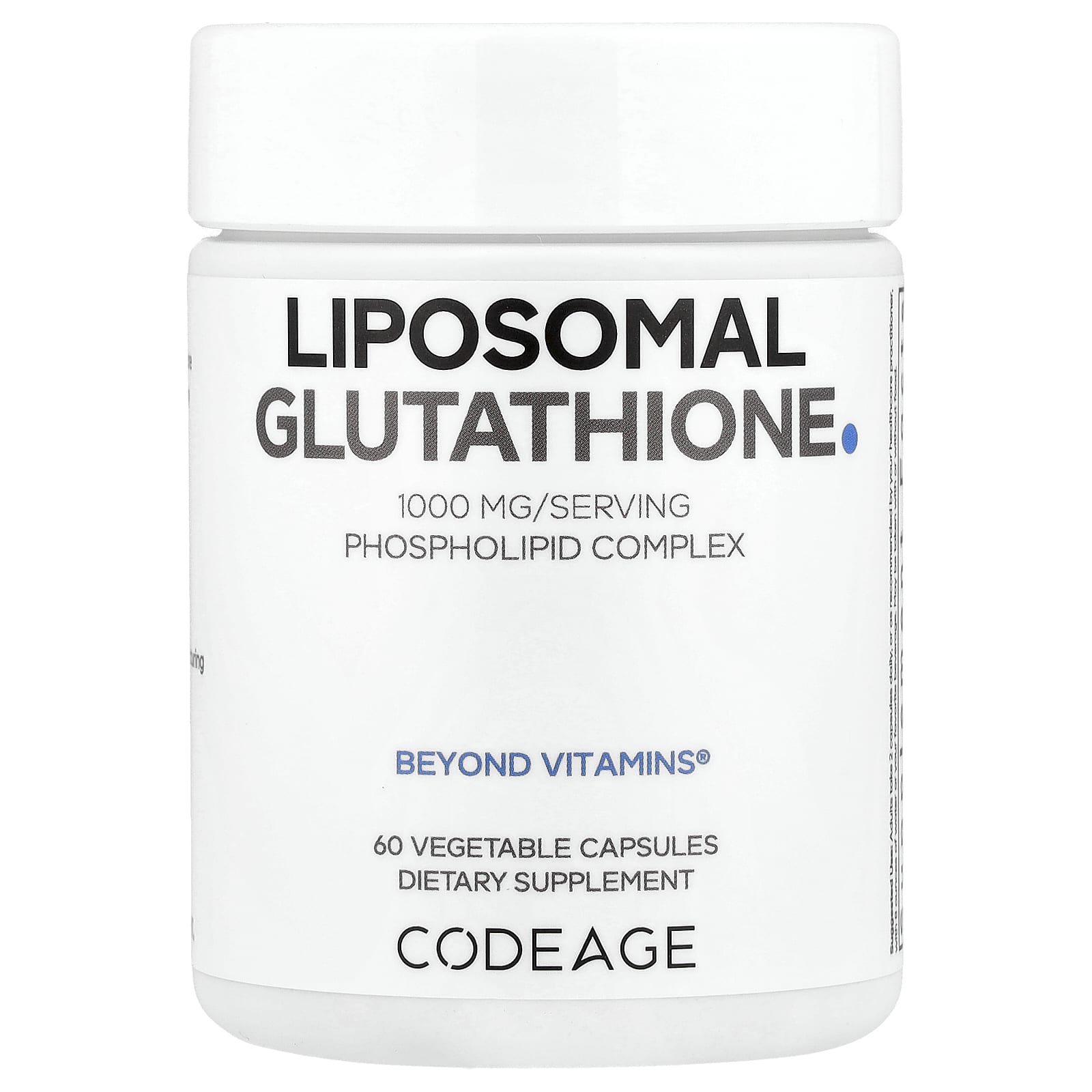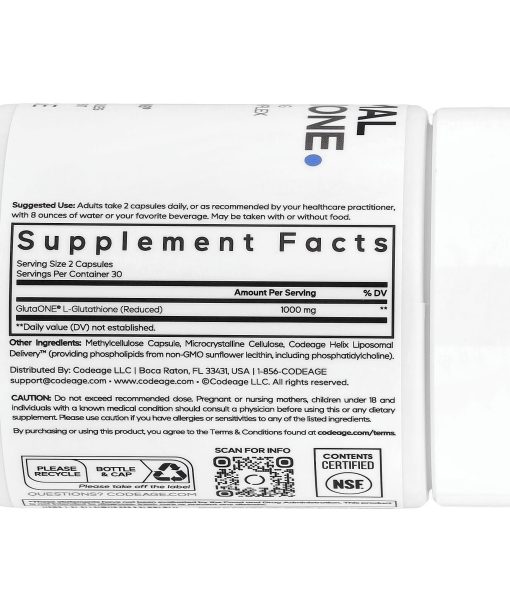 Phospholipid ComplexBeyond Vitamins®Dietary SupplementNSF Contents CertifiedReduced L-GlutathioneLiposomal DeliveryVeganNon-GMOSoy-FreeDairy-FreeGluten-FreecGMP Certified ManufacturingFeel DifferentCodeage Liposomal Glutathione supplement features 500 mg of Setria® L-Glutathione per serving, a patented form of glutathione known for its unique quality and purity. This advanced supplement also includes a liposomal formula made with a phospholipid complex.