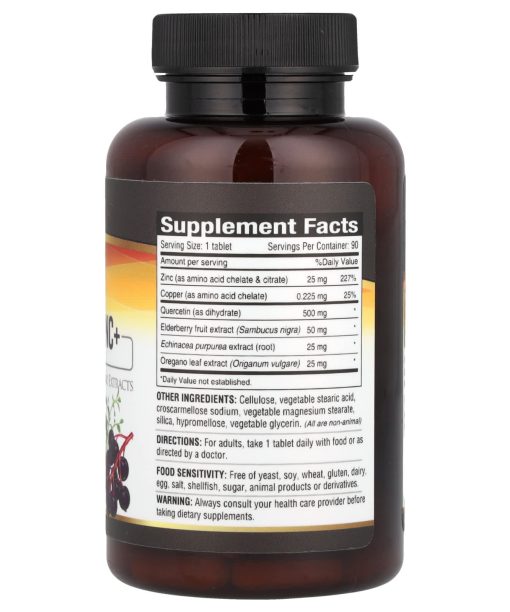Includes Elderberry, Echinacea & Oregano Extracts500 mg Quercetin + 25 mg ZincVegan®Dietary Supplement100% Vegetarian Quercetin is a flavonoid pigment that is present in many fruits and vegetables.Zinc is an essential mineral our body needs for health and proper function. This product is registered with the Vegan Society.