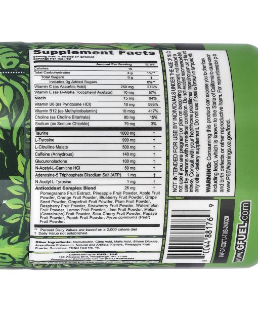 Sugar Free15 CaloriesNaturally and Artificially FlavoredEnergyFocusEnduranceReactionDietary SupplementReady to unleash your inner gaming champion? “THE JUICE” GFUEL flavor is here to catapult you to elite status! An explosive fusion of tropical fruits designed to elevate your game to legendary heights! Juice up your gaming experience today!Great TasteThe #1 thing our customers mention about GFUEL is the taste.Zero SugarEnjoy the energy, avoid the sugar crash.Vitamin RichPacked with vitamins plus a balanced mix of antioxidants.Boosts FocusFocus aminos provide a unique edge to stay mentally sharp.Natural StimulantCaffeine levels give your mind a quick jump start.