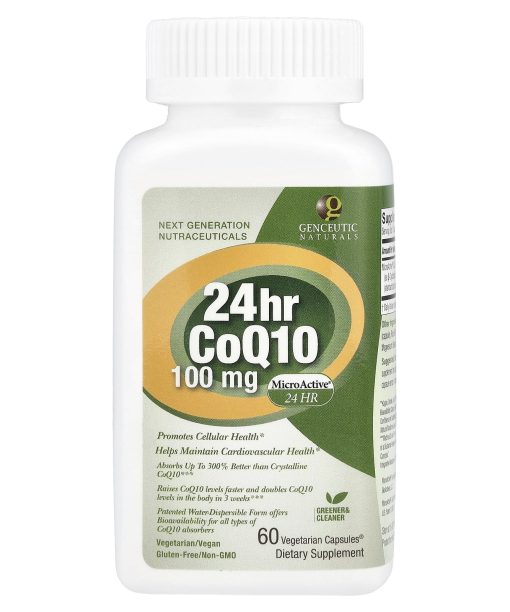 Vegetarian/VeganGluten-Free/ Non-GMONext Generation Nutraceuticals MicroActive® 24 HRPromotes Cellular HealthHelps Maintain Cardiovascular HealthAbsorbs Up To 300% Better than Crystalline CoQ10***Greener & CleanerDietary SupplementRaises CoQ10 levels faster and doubles CoQ10 levels in the body in 3 weeks***.Patented water-dispersible form offers universal bioavailability for all types of CoQ10 absorbers.Science Corner Scientist around the world have been researching the important benefits of CoQ10, which include supporting cardiovascular wellness and cellular energy. 24 hr CoQ10 100 mg supplies 24 hour sustained release MicroActive® CoQ10 Complex, patented for bonding CoQ10 with ß-Cyclodextrin.This water-dispersible form offers universal enhanced absorption.Advanced 24 hour Time-Released40% More Consistent Absorption Than Ubiquinol**The SciencePatented 24hr CoQ10Compared to Ubiquinol40% More Consistent Absorption Than Ubiquinol**Universal Enhanced Absorption√Superior Bioavailability√Time-Released24 hourNon-GMO (Non-Genetically Modified)√Free of Pesticides√100% Vegetarian√**Kagan, Daniel, et al.” “Universal” and “Reliable” Bioavailability Claims: Criteria That May Increase Physician Confidence in Nutritional Supplements.” Natural Medicine Journal 2.1 (2010): 1-5.***Madhavi, D. and Kagan. “A Study on the Bioavailability of a Sustained-release Coenzyme Q10-ß-Cyclodextrin Complex. Integrative Medicine 9.1 (2010): 20-24.