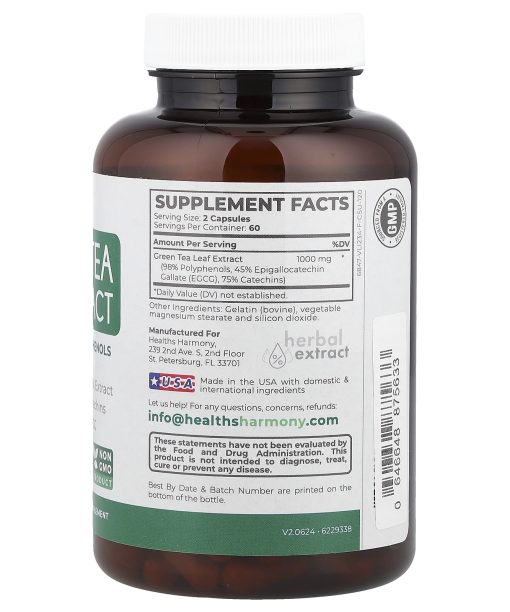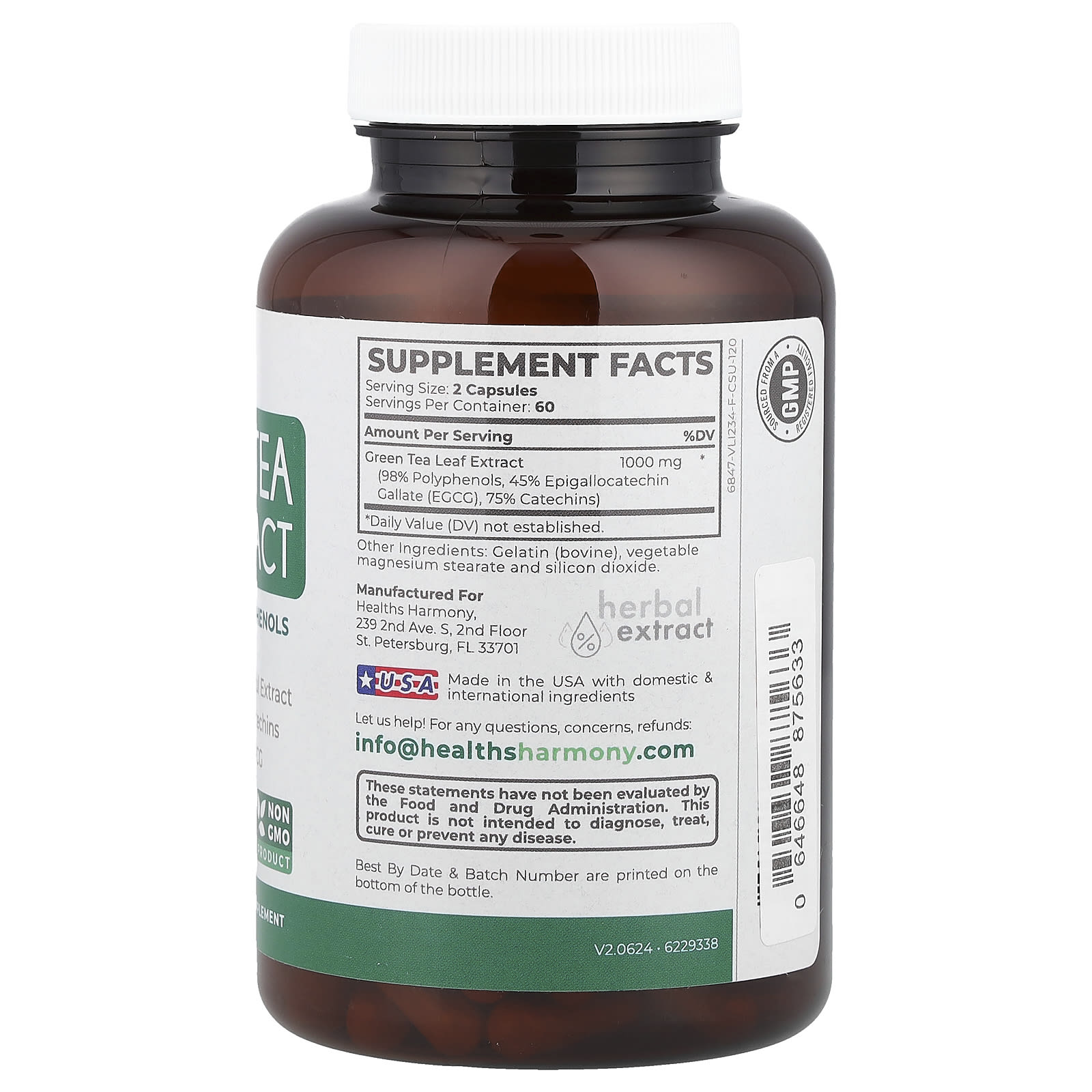 Healths Harmony, Green Tea 98% Extract, 120 Capsules (500 mg per Capsule)