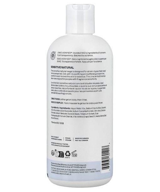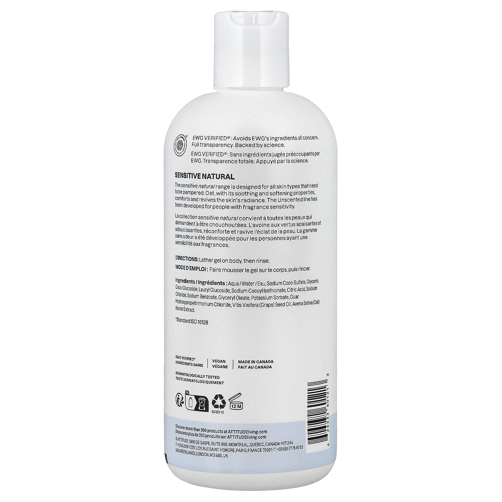 ATTITUDE, Sensitive Natural, Shower Gel, Unscented, 16 fl oz (473 ml)