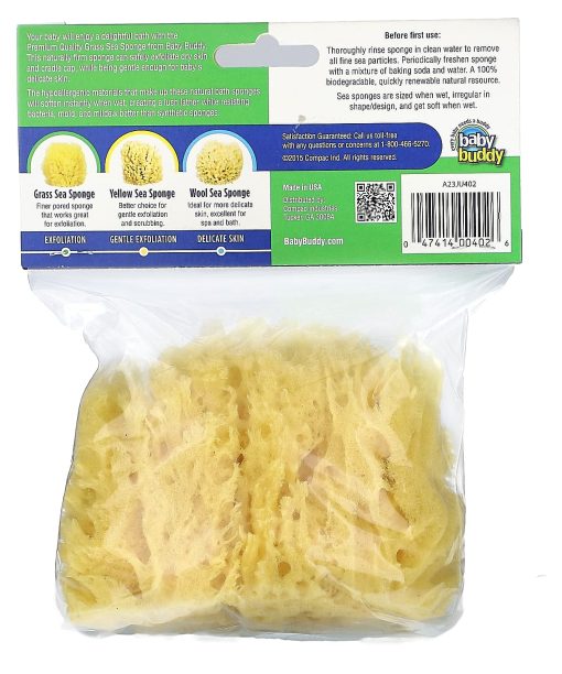 Every Baby Needs A BuddyGrows to 4 Inches When WetHypoallergenic MaterialTextured for ExfoliationHighly Absorbent and DurableGently Remove Cradle CapGreat for ExfoliationYour baby will enjoy a delightful bath with the Premium Quality Grass Sea Sponge from Baby Buddy. This naturally firm sponge can safely exfoliate dry skin and cradle cap, while being gentle enough for baby’s delicate skin. The hypoallergenic materials that make up these natural bath sponges will soften instantly when wet, creating a lush lather while resisting bacteria, mold, and mildew better than synthetic sponges.Grass Sea Sponge (EXFOLIATION) – Finer pored sponge that works great for exfoliation.Yellow Sea Sponge (GENTLE EXFOLIATION) – Better choice for gentle exfoliation and scrubbing. Wool Sea Sponge (DELICATE SKIN) – Ideal for more delicate skin, excellent for spa and bath.
