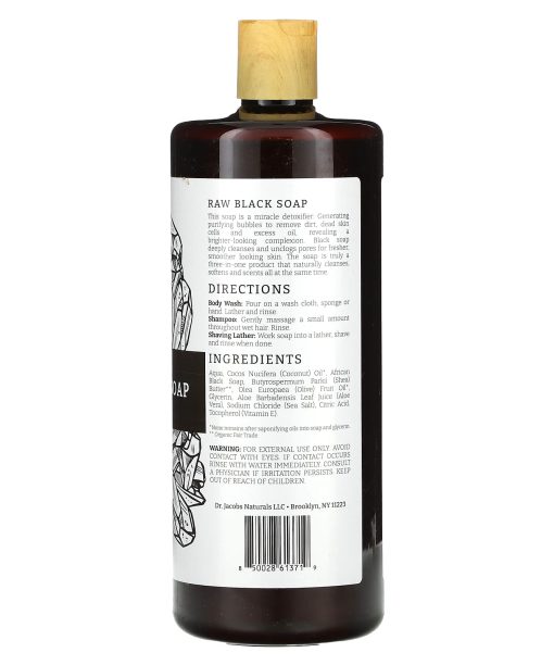 Dr. Jacobs Naturals, Plant-Based African Raw Black Soap Body Wash, 32 oz (946 ml)