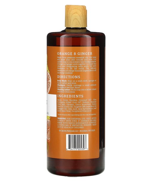 Dr. Jacobs Naturals, Plant-Based Rich Castile Body Wash, Orange & Ginger Essential Oil, 32 oz (946 ml)