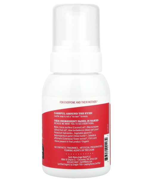 All-Purpose Castile SoapRidiculously GentleHands + Body + All of ItLeaping Bunny®; Cruelty FreeAccepted National Eczema AssociationFor Everyone And Their Mother®Certified Organic by Oregon TilthGrounded in Nature, Powered by Love®Simply Non-Scents Baby Wash is the cleaner clean BFF for babies, pregnant mamas, your oldest friends, the puppy … pretty much everyone and their mother! Not to mention, it’s a non-toxic multi-use cleaner for fruits and veggies, your kitchen counter, and the entire house – front to back, top to bottom. Chosen by hospitals and dermatologist tested and clinically tested for irritation, Earth Mama’s castile-based washes are uniquely formulated with calendula, shea butter and glycerin, so skin stays moisturized and safely clean. Made with organic herbs and oils. No secrets. No surprises. This Is Real Castile Soap That means you won’t find synthetic surfactants, foaming agents, preservatives or other potentially endocrine-disrupting chemicals. It’s 100% bona fide liquid castile soap that foams naturally.