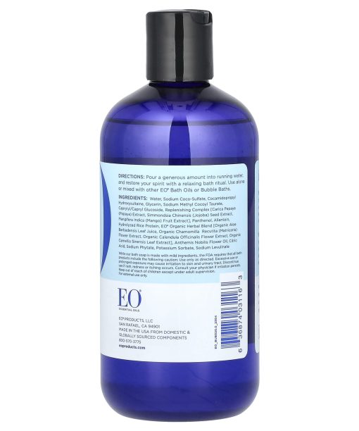Pour a generous amount into running water, and restore your spirit with a relaxing bath ritual. Use alone or mixed with other EO® Bath Oils or Bubble Baths.