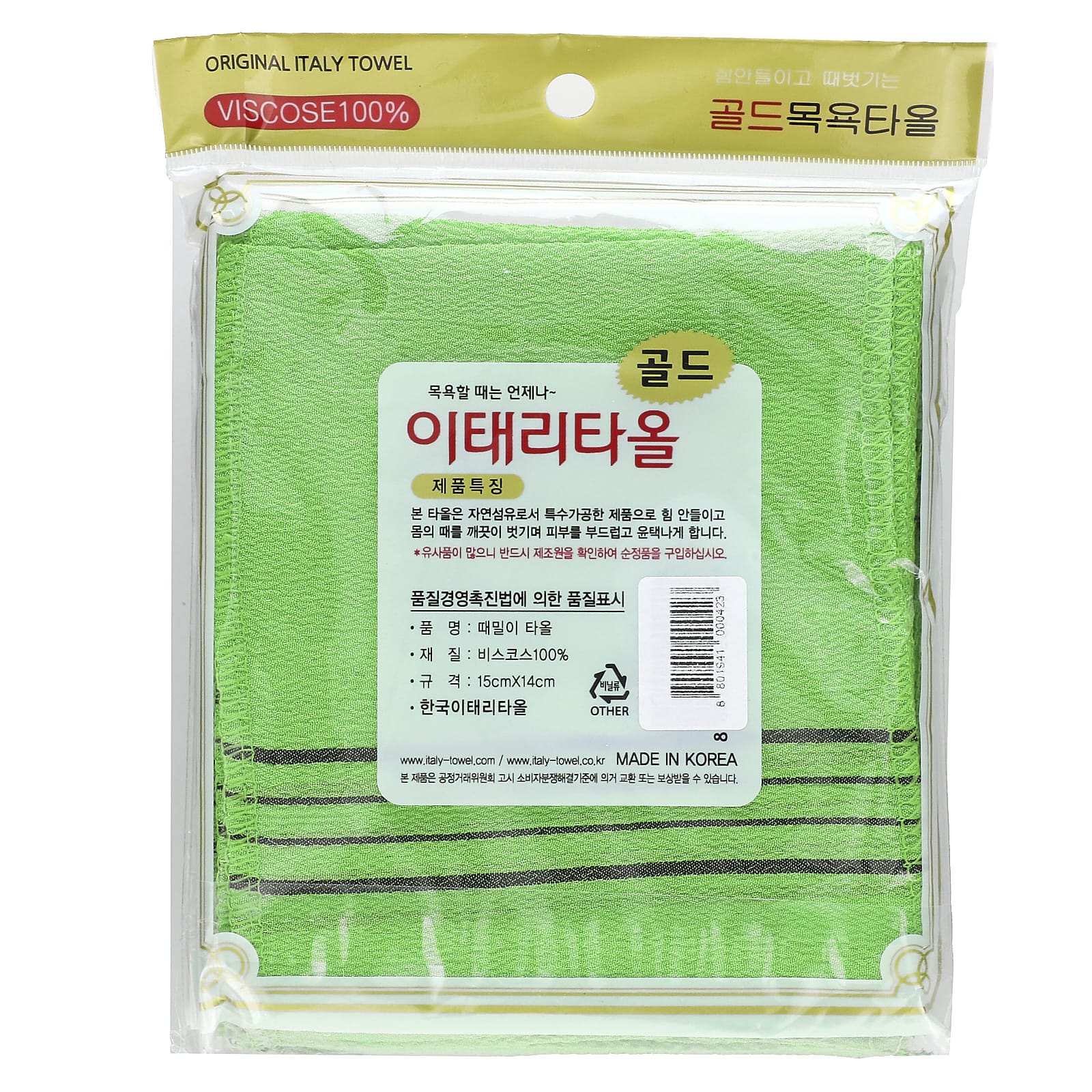 Goldsangsa, Exfoliating Towel, Green, 20 Count