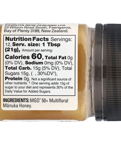 Beekeeping Since 1974Raw, Wild & UnpasteurizedNon GMO Project VerifiedMGO 50+Product of New ZealandCertified Gluten FreeKosherHalalOur Jars are BPA FreeComvita™ Multifloral Manuka is a smooth blend of honey derived from the Manuka flower and other New Zealand wildflowers. Rich in color, and with a flavorful taste, it adds a delicious touch of nature to your day!This MGO 50+ Multifloral Manuka Honey is scientifically proven to contain a minimum 50 mg/kg of Methylglyoxal (MGO), a naturally occurring compound in Manuka Honey.