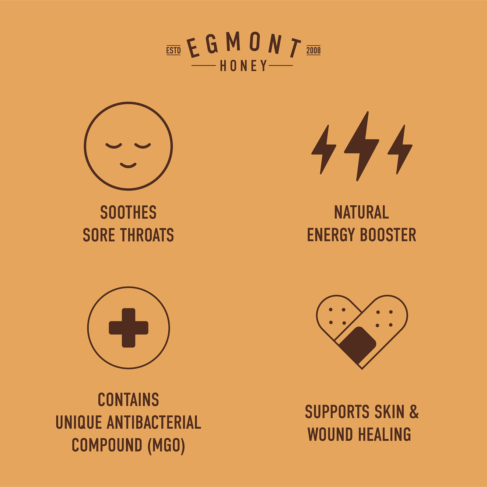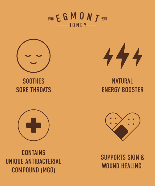 EverydayRaw & UnpasteurizedMade in New Zealand From New Zealand HoneyMultifloralNon GMO Project VerifiedBPA FreeHalalKosher KiwiEgmont Manuka Honey is based under Mount Taranaki, a volcano that defines the region. Our Manuka Honey is produced by bees collecting nectar from the Manuka plant that grows wildly in New Zealand. Nothing to hide; nothing but nature. Certified MGO ensures this hone contains at least 50mg/kg of methylglyoxal as tested by an IANZ approved laboratory.
