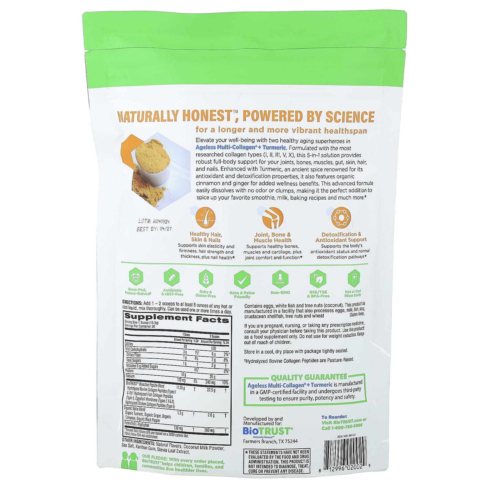 BioTRUST, Ageless Multi Collagen® + Turmeric, Golden Milk, 10.7 oz (304 g)