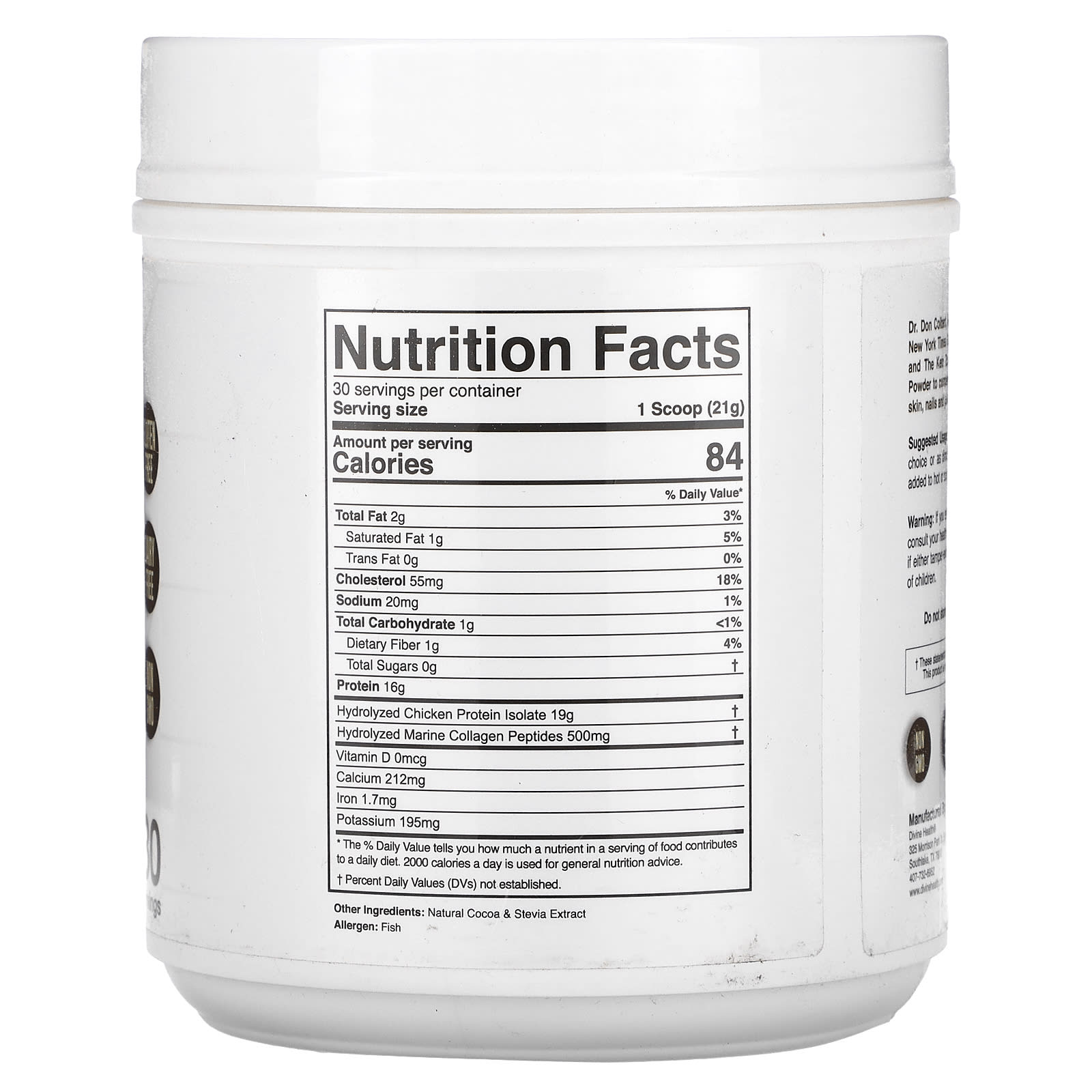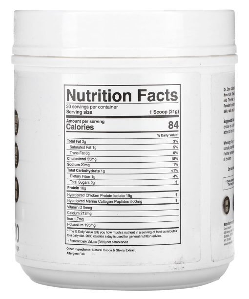Dr Colbert M.D.Gluten FreeDairy FreeNon GMOHydrolyzedChicken and Marine CollagenType I, II & III CollagenNo Artificial SweetenerNo Artificial PreservativesGood Manufacturing Practice Certification – GMP QualityDr. Don Colbert MD is a practicing Medical Doctor and two-time New York Times Bestselling author of The Seven Pillars of Health and The Keto Zone® Diet. He formulated Keto Zone® Collagen Powder to compensate for the loss of Collagen in individuals hair, skin, nails and joints during the natural aging process.