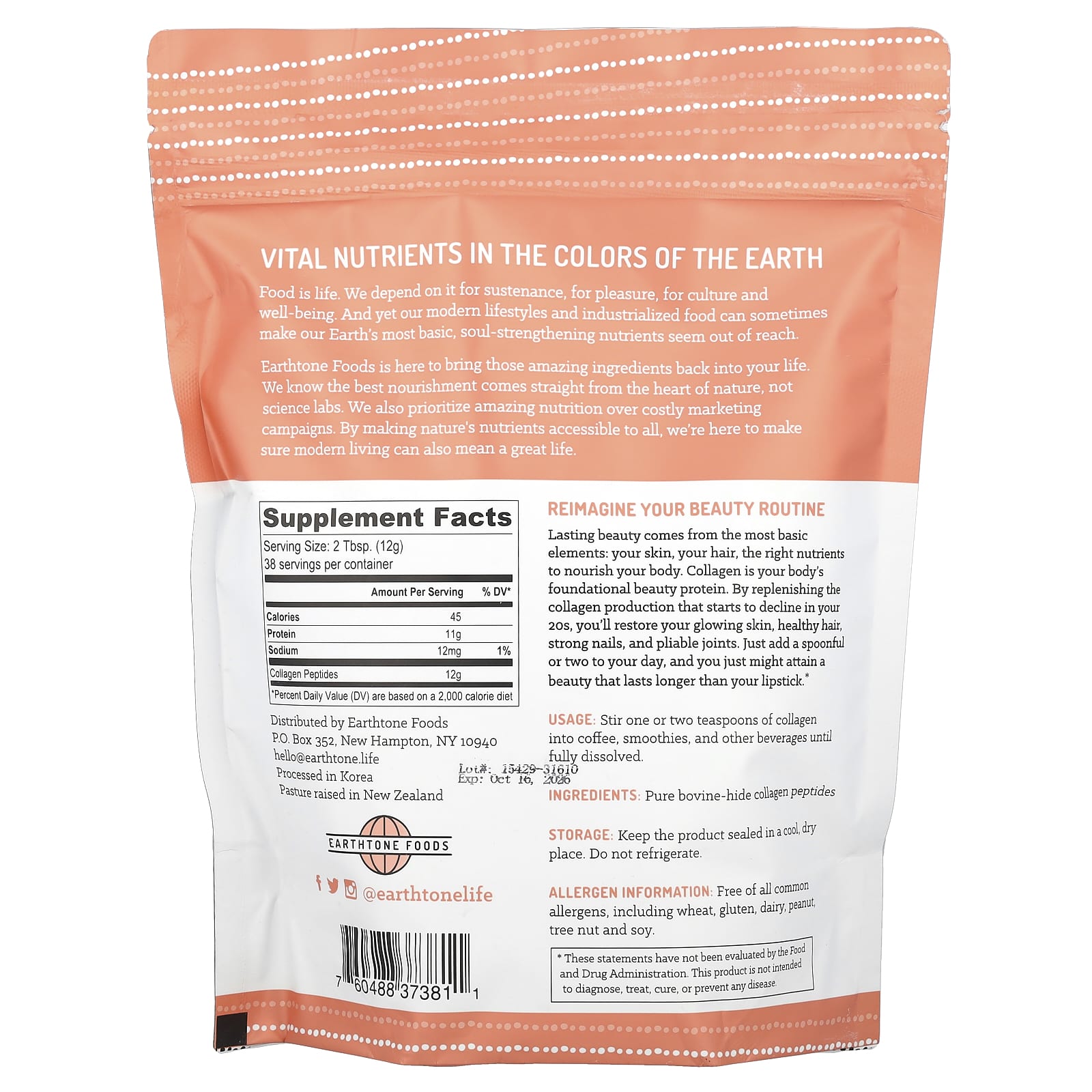 Earthtone Foods, Grass-Fed Collagen Peptides, 16 oz (454 g)