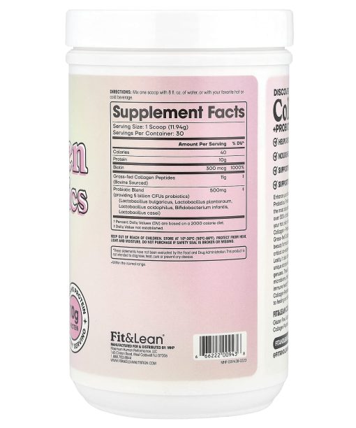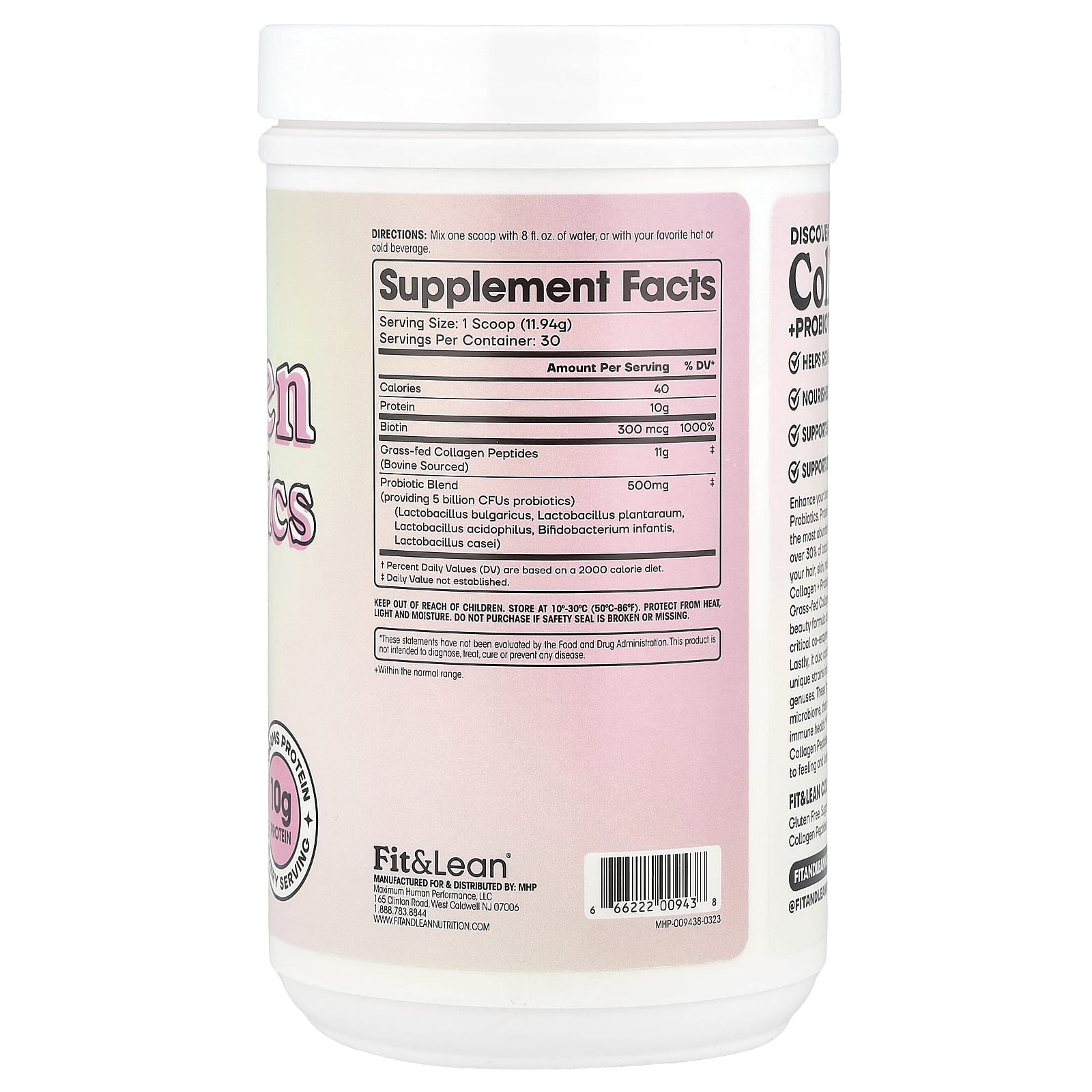 Fit & Lean, Collagen + Probiotics, Unflavored, 12.64 oz (358.2 g)