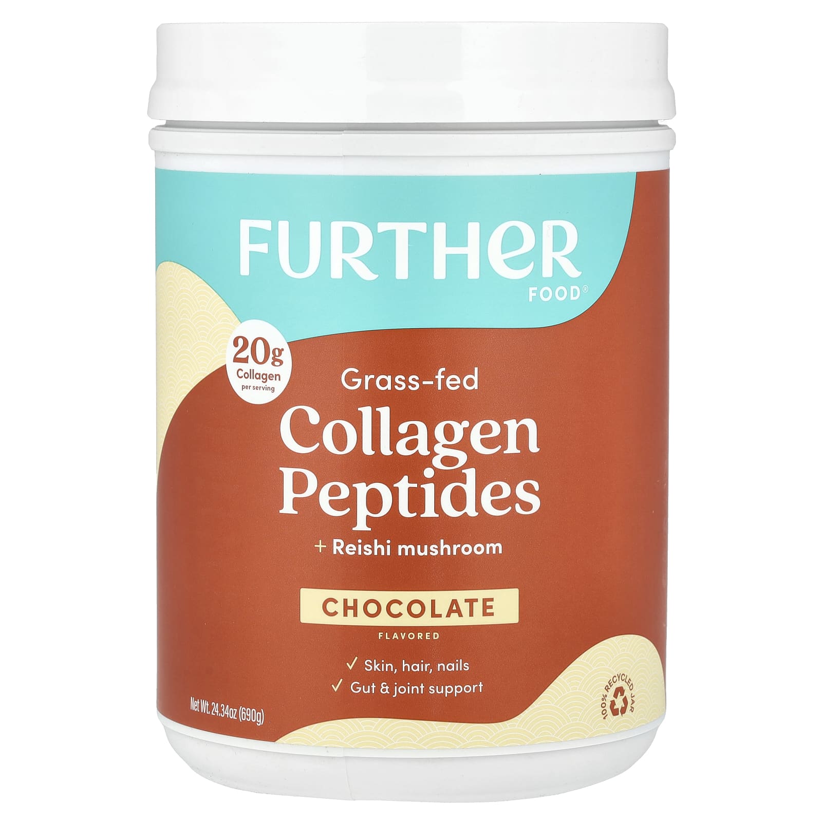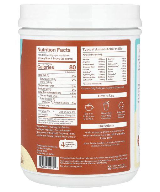 Further Food, Grass-Fed Collagen Peptides + Reishi Mushroom, Chocolate, 24.34 oz (690 g)