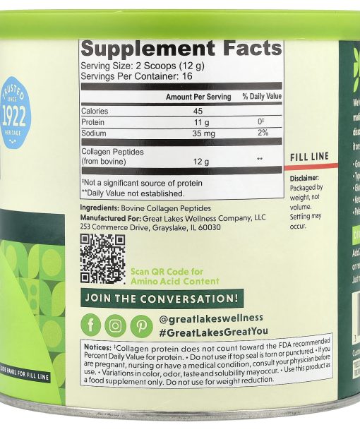 Great Lakes Wellness, Quick Dissolve Collagen Peptides, Daily Wellness, Unflavored, 7 oz (198 g)