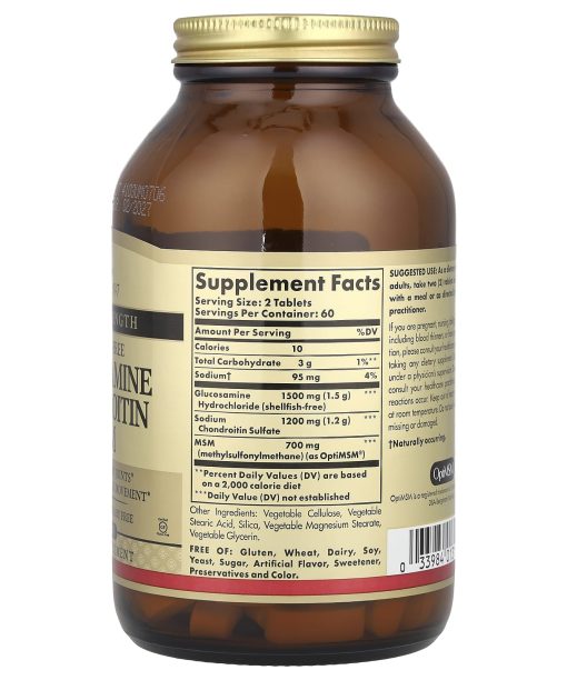 Since 1947Shellfish-FreePromotes Healthy JointsSupports Comfortable MovementWheat & Dairy FreeCertified Gluten FreeDietary SupplementOptiMSM® Glucosamine promotes joint health and nutritionally works to promote the structural framework of healthy joints. Glucosamine and Chondroitin both provide the essential structural material glycosaminoglycans which are required for healthy cartilage, supporting mobility, range of motion, flexibility and to ease occasional joint stress due to exercise or physical activity. MSM (Methylsulfonylmethane) provides a naturally occurring, bioavailable source of sulfur.
