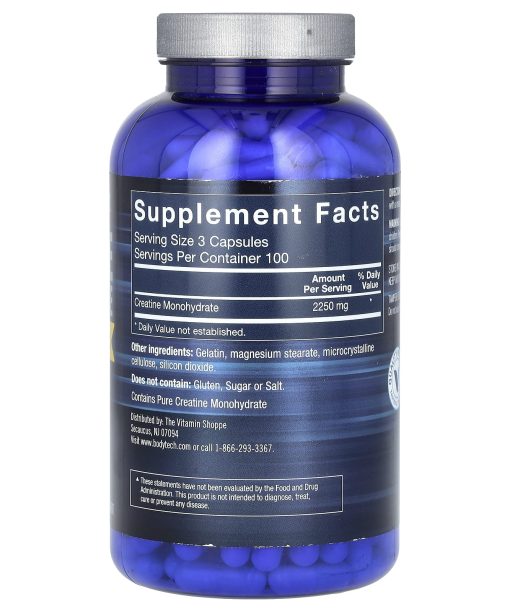 Helps Build Muscle, Strength & MassAlso Supports Muscle Endurance and Delays Fatigue Dietary Supplement Quality Promise Tested & Trusted If you want to go the distance, you have to prep for the journey. Creatine is an amino acid that plays a crucial role in optimizing energy utilization during weight training and high-intensity interval training so you can max out your PRs and achieve those fist-pumping results.Two servings (3 capsules per serving) of BodyTech® Creatine Monohydrate yield 4,500mg of pure creatine monohydrate per day to support endurance, muscle strength, and exercise performance.