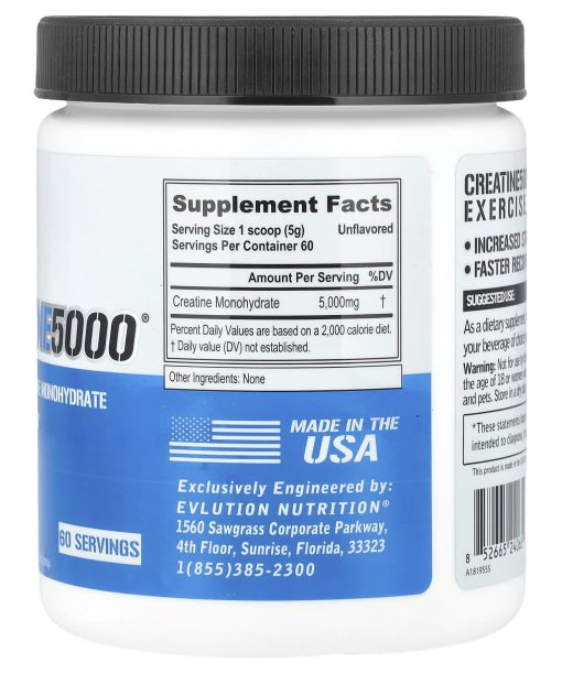 EVLution Nutrition, Creatine5000®, Unflavored, 10.58 oz (300 g)
