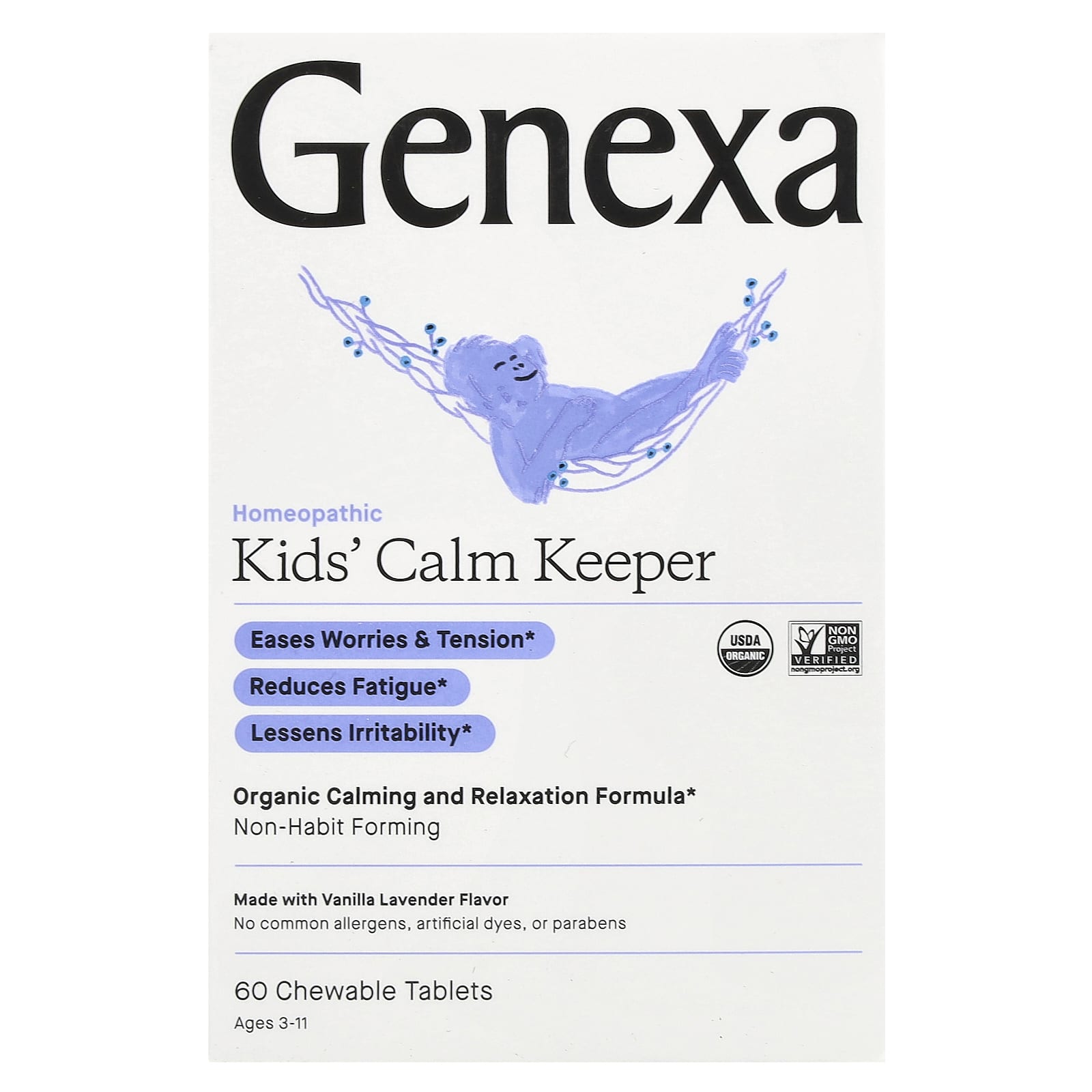 Genexa, Kids´ Calm Keeper, Ages 3-11, Vanilla & Lavender, 60 Chewable Tablets