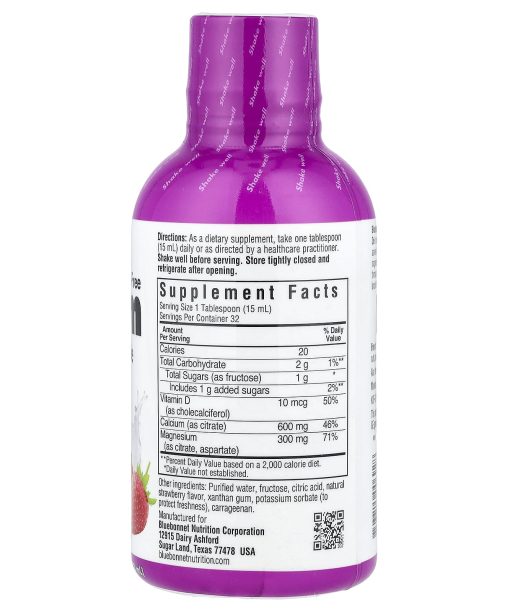 May Support: Bone HealthIgen Non-GMO TestedMilk FreeKosher ParveGluten FreeDietary SupplementBPA FreeBluebonnet’s Liquid Calcium Magnesium Citrate & Vitamin D3 is formulated with calcium in a chelate of calcium citrate, as well as magnesium in a chelate of magnesium citrate and magnesium aspartate in a delicious strawberry flavor. This formula also contains vitamin D3 (cholecalciferol) from lanolin for strong healthy bones.This product does not contain common GE genes or proteins.