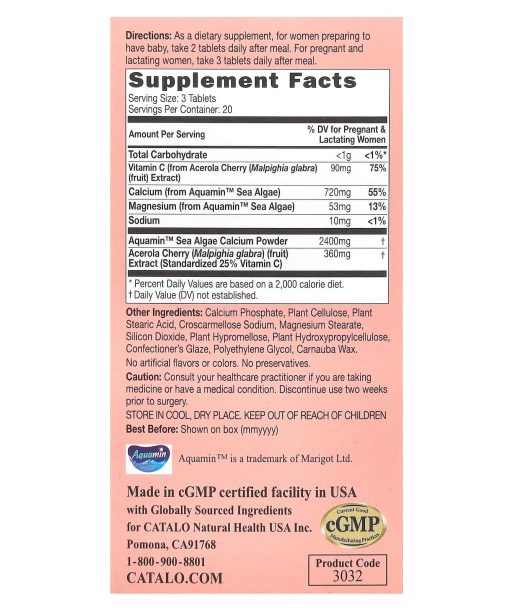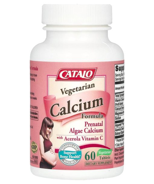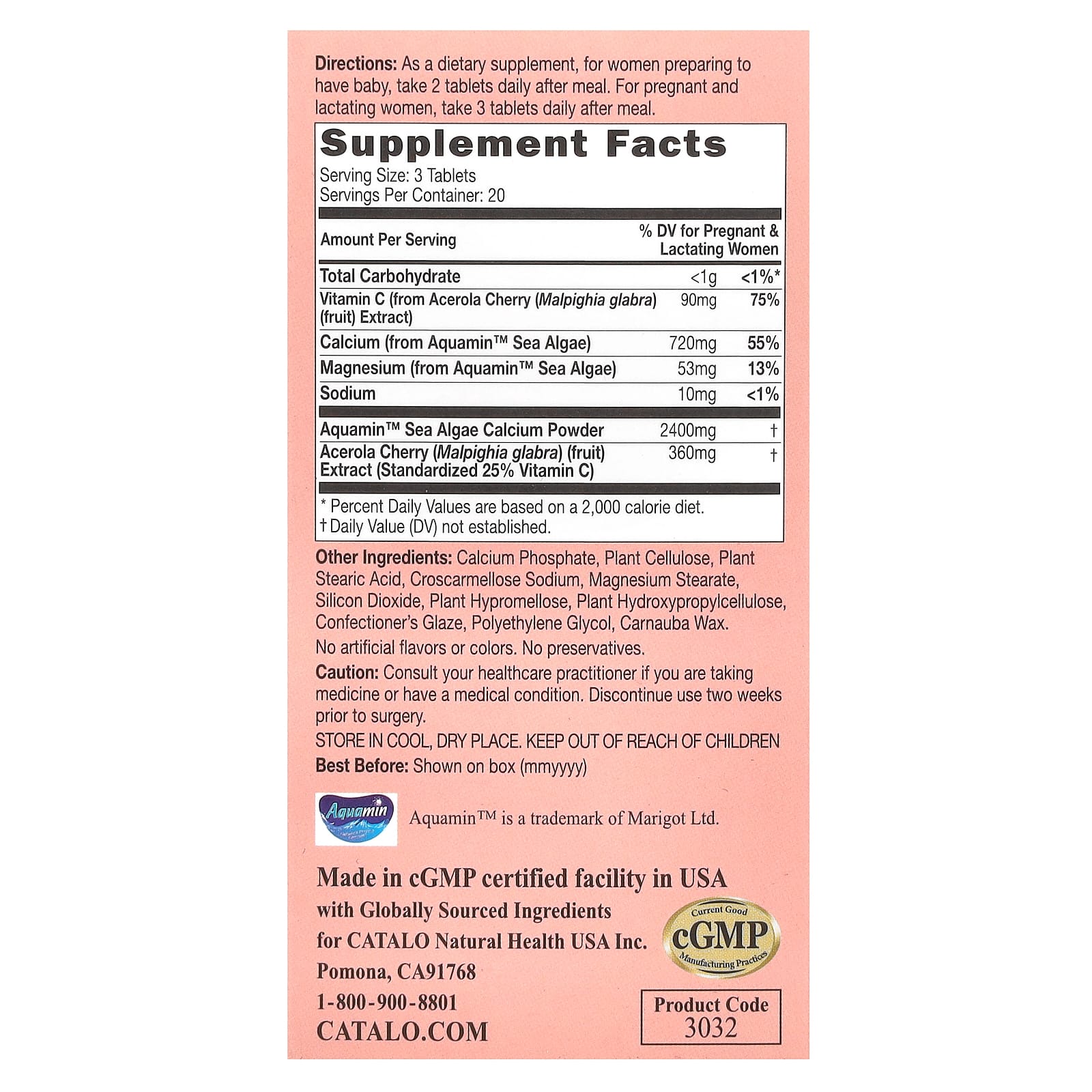 CATALO, Vegetarian Calcium Formula, Prenatal Algae Calcium with Acerola Vitamin C, 60 Vegetarian Tablets