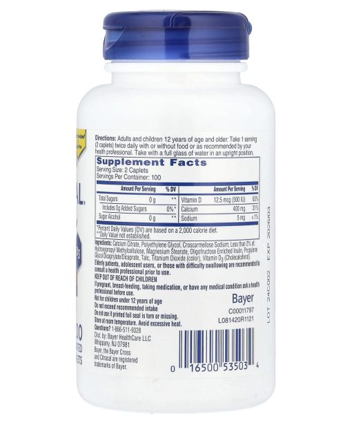 Easier to Swallow† & Sugar Free Calcium CitrateBayer#1 Doctor & Pharmacist§ Recommended Calcium BrandDefy bone aging with calcium and a high level of vitamin D3.Adequate calcium and vitamin D throughout life, as part of a well-balanced diet, may reduce the risk of osteoporosis.Citracal petites comes in smaller,† easier to swallow caplets made with calcium citrate, a different kind of calcium:Highly soluble, easily absorbedCan be taken with or without food†Compared to Citracal Maximum Plus§Pharmacy Times Survey 2018