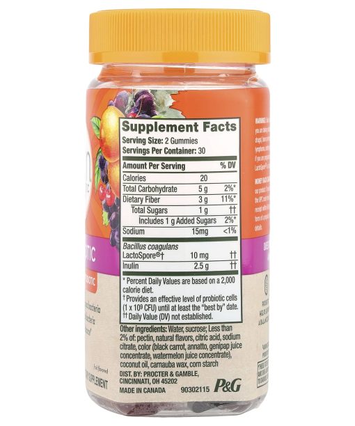 Dietary SupplementProbiotics Helps Support a Balanced GutGluten FreeNaturally Sourced Colors#1 Doctor Recommended Brand‡Helps nourish your good bacteria + adds more good bacteria for digestive balance.‡Among doctors who recommended a brand of probiotic in provoice 2021 survey.