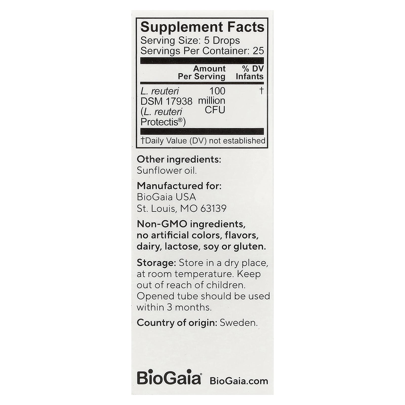 Shake well for 10 seconds. Press the tube gently & dispense 5 drops into a spoon. Use once daily. Recommended dose should not be exceeded. Not intended for use in premature infants. Do not dispense directly from the tube into a baby’s mouth as this may reduce the quality of the product.