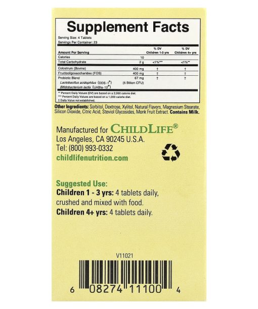 EssentialsNutrition for Kids!®Non-GMO Gluten-Free With Other Natural FlavorsProbiotic Dietary SupplementHealth Tip: ChildBiotics™ Probiotics with Colostrum Chewable Tablets combines clinically studied probiotic strains with bovine colostrum and prebiotic FOS to provide a range of immune supporting ingredients all in great tasting tablets. Formulated to support gut and immune health by supplying beneficial bacteria and colostrum to the gastrointestinal tract. ChildLife Essentials® uses only the highest quality ingredients. Pediatrician ApprovedChildLife Essentials® is formulated by Dr. Murray Clarke, leading Naturopathic Pediatrician in the U.S.A. ChildLife® supplements provide the highest quality ingredients available, which are all natural, clean, pure, and fresh.