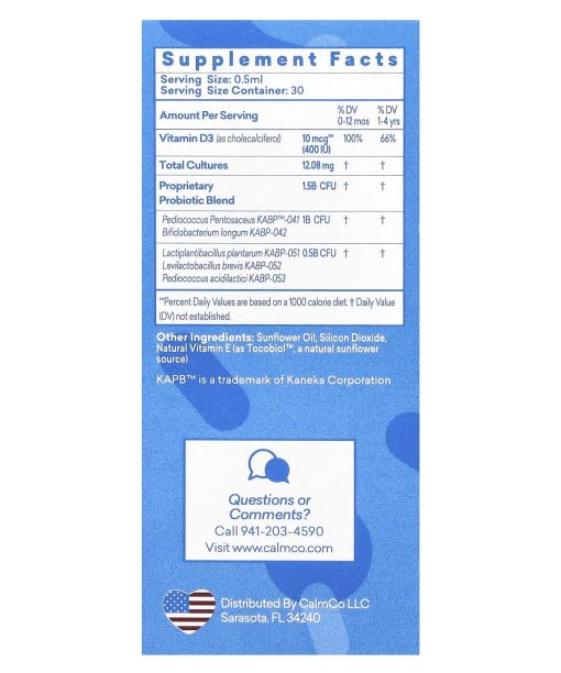 5-Strain Formulation400 IUSupports Infant & ChildGut and Digestive Health + Vitamin D Powerful Immune SupportClinically Proven StrainsGuaranteed Live Cultures***1.5 Billion CFU*** Per ServingPediatrician RecommendedDigestive SupplementFrom the Makers of Colic Calm®Proprietary blend of probiotics ideal for infants and children. Daily support for digestive health. May support colic relief.***Cultures guaranteed under indicated optimum conditions.
