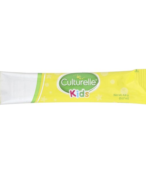 This product is intended for use under adult supervision only. Keep out of reach of children. Not intended for children under 1 year of age. Inform a healthcare professional before starting and dietary supplement, particularly if there is a known immune-compromised condition.Storage Instructions:  Store Culturelle® in a cool, dry place away from direct sunlight.Tamper Evident:  Product is sealed with packets. Do not use if any part of the packet is torn, open or damaged.When first taking Culturelle® your child may experience minor bloating, gas or intestinal gurgling which should subside with continued use. Consult your healthcare professional if symptoms persist after two weeks.