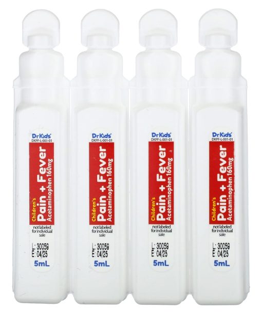 DrKids, Children’s Pain + Fever, Ages 2-11 Years, Cherry, 20 Pre-Measured Single-Use Vials, 0.17 fl oz (5 ml) Each