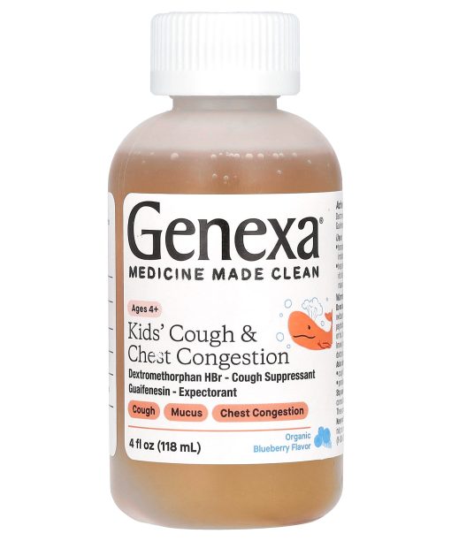 Genexa, Kid’s Cough & Chest Congestion, Ages 4-11, Organic Blueberry, 4 fl oz (118 ml)