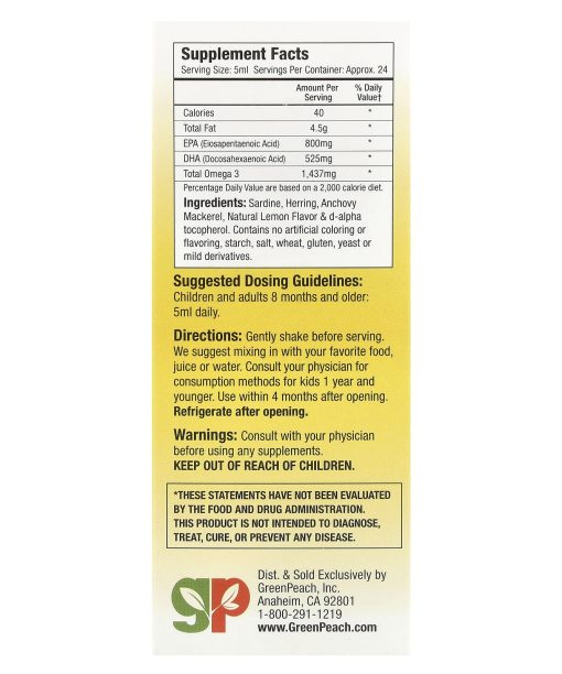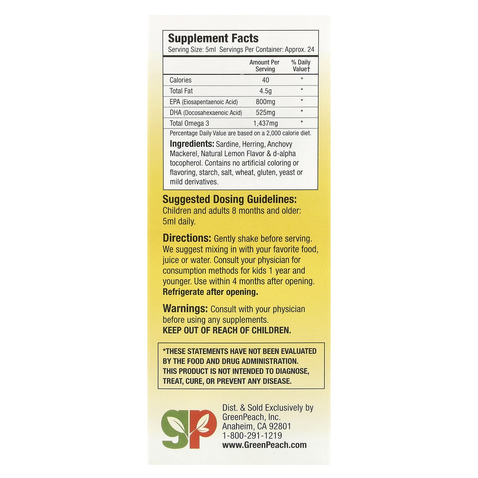 GreenPeach, Omega 3 EPA & DHA, Lemon, 4 fl.oz (118.3 ml)