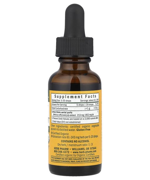 Calming and SoothingUSDA OrganicHerbal SupplementGluten FreeDry Herb / Menstruum Ratio 1 : 3Certified Organic by Organic CertifiersWe prepare our alcohol-free Kids Lemon Balm Calm glycerite from the shade-dried aerial parts of Melissa officinalis plants. We grow our Lemon Balm on our own Certified Organic farms in southern Oregon.