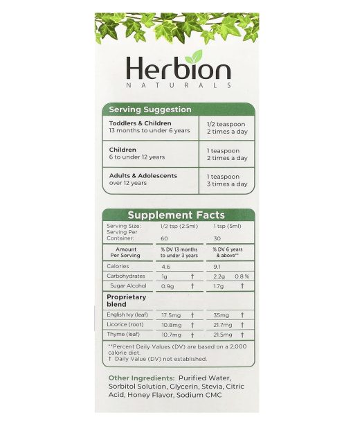 Herbion Naturals, Naturals, Ivy Leaf Cough Syrup With Thyme & Licorice, Sugar Free, 5 fl oz (150 ml)