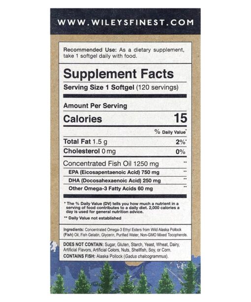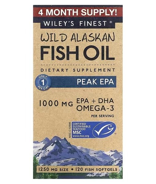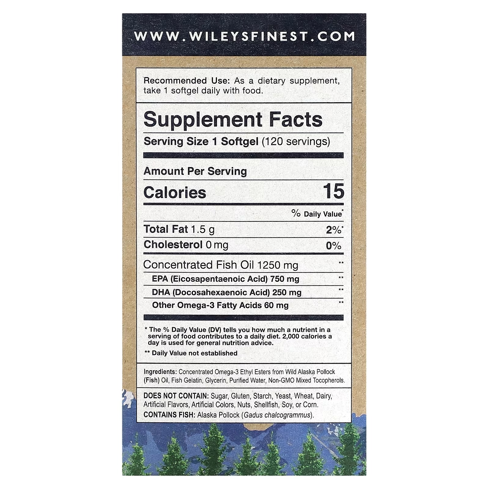 Wiley’s Finest, Wild Alaskan Fish Oil, Peak EPA, 1,250 mg, 120 Fish Softgels