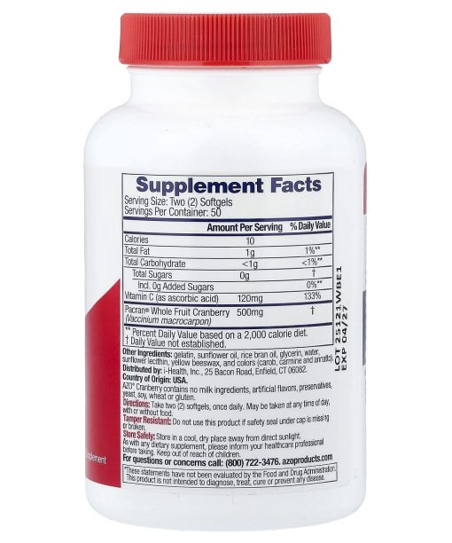 #1 Urinary Health Brand§Reduced Risk of Recurring UTIs°Cranberry SupplementNon GMODairy FreeGluten FreeCranberry Power: Life Hack Studies show cranberry can help stop bacteria from sticking to your bladder wall. But not all cranberry is created equal! Our softgels are packed with Pacran®, a proprietary blend of whole cranberry fruit. It is clinically proven to help cleanse and protect the urinary tract.°Consuming two (2) softgels each day of AZO® Cranberry may help reduce the risk of recurrent urinary tract infection (UTI) in healthy women. FDA has concluded that there is limited scientific evidence supporting this claim. §Based on custom Nielsen US xAOC, 52 W/E 7/13/24.