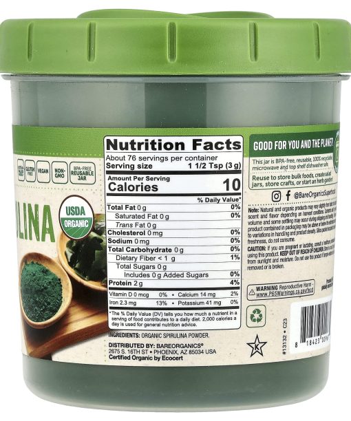 BareOrganics, Organic Spirulina Powder , 8 oz (227 g)
